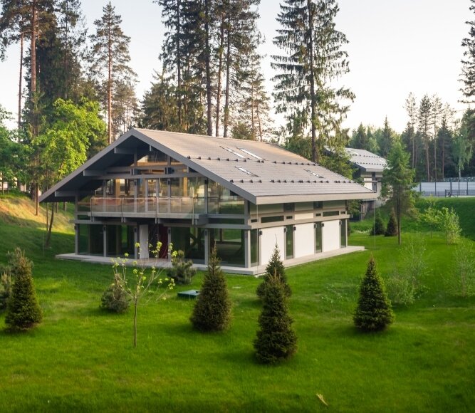 В коттедже реализована комплексная система KNX-умного дома, которая объединила управление освещением, климатом, вентиляцией и электропитанием в единый центр: